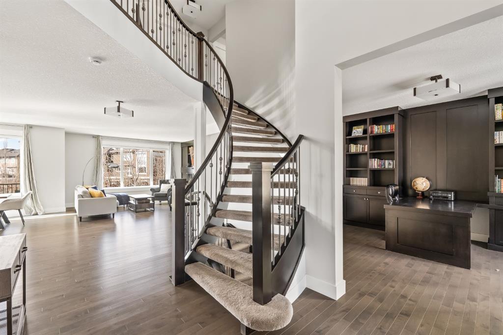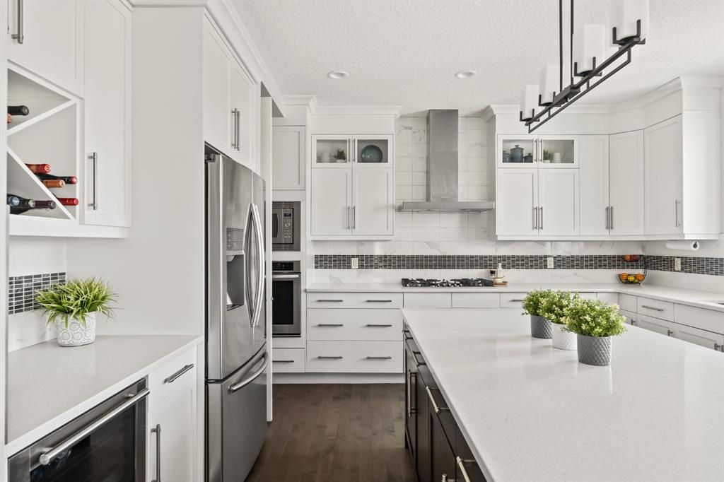 OPEN HOUSE – Sat April 11 (1-3pm) WOW!!! This is the PREMIER LOT in Aspen Vista, a 9,200 sq ft pie-shaped lot, a SW exposure BACKING a greenbelt with direct access to the walking paths - WOW! PLUS… mere steps to the many shops and services at Aspen Landing, a short walk to Rundle College and the kids could ride their bikes to Webber Academy… this is an exceptional location in Aspen Woods Estates – PRIVATE & QUIET! This two storey WALKOUT, measuring 4700+ sq ft over three levels, offers 4 beds and a fantastic Bonus Room up, 4.5 baths, a fully developed walkout with a wonderful open rec room and wet bar plus… a 5th bed and full bath down AND an OVER-SIZED 3 car garage! On arrival you will love the wide open plan on the main, and a volume of windows across the back which bath the home in the warmth of the sun, drawing you through – AMAZING! Highlights here include 9’ ceilings, maple hardwoods running through the main, open riser staircase connecting all three levels, designer lighting and window coverings, quartz countertops throughout, custom millwork, an engaging floor plan, a wonderful kitchen and more. On the main a wide open space for entertaining, leading directly to your expansive rear deck and SW exposure, while still offering intimate spaces for dining and study. The kitchen features white quartz countertops, full height cabinets, s/s appliances including a gas cooktop and wall oven, and a double island for in kitchen meals on the go. The kitchen is open to a generous breakfast nook and the living room with a designer feature wall and fireplace. There is a proper Dining Room, discreetly tucked away, an intimate space for family & friends and a striking Den/Home office at the entrance featuring a custom built-in desking and shelving. Follow the sweeping open-riser staircase upstairs where you will find a large Primary Retreat, which also enjoys the SW exposure overtop of the yard, and an inviting 5pc en suite – BRILLIANT! There three additional beds up, one of which enjoys a private en suite… and you will love the BONUS ROOM, tucked away at the end of a corridor. The walkout has been fully developed with a large rec room, fitness/media space, wet bar, a 5th bed and full bath… and of course direct access to the AMAZING rear yard…. a 9200 sq ft pie shaped lot provides a tremendous volume of space for the kids to run and play… or your own Stampede BBQ? MLS®: A2299351 - Aspen Woods 2 Storey $1,985,000