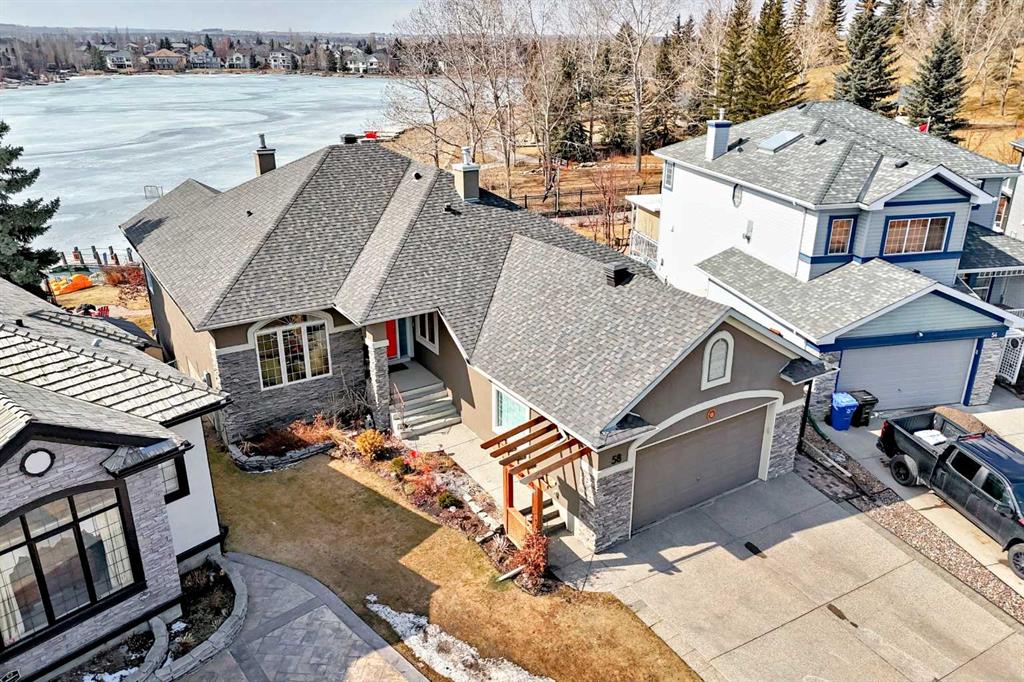 Includes: Dock, Paddle Boat, Electronic Awnings, both TV brackets and TV's. Bar stools can stay. Site Influences: Lake, Landscaped, No Back Lane, Pie Shaped Lot, See Remarks, Sloped Down, Street Lighting, Underground Sprinklers, Views, Waterfront Property InformationProperty Type: Residential Detached Single Family Home Style: Bungalow Year Built: 1998 Total Floor Area: 1,870 sq. ft. Brokerage: RE/MAX House of Real Estate Listed Date: Please login or create an account Community InformationCity/Town: Calgary Community: Chaparral ExteriorLot Size: 0.20 sq.ft. Lot Shape: Lake,Landscaped,No Back Lane,Pie Shaped Lot,See Remarks,Sloped Down,Street Lighting,Underground Sprinklers,Views,Waterfront Exterior: Stone, Stucco, Wood Frame Construction: Stone,Stucco,Wood Frame Frontage: 10.85M 35`7" Front Exposure: NE Roof: Asphalt Shingle,See Remarks Parking: Double Garage Attached, Side By Side Total Parking: 4 InteriorHeating: Fireplace(s), Forced Air, Natural Gas Basement: Full Floor Finish: Carpet, Hardwood, Tile, Vinyl Fireplace Details: For Sale RoomsTotal Bedrooms: 4 (Bedrooms Above: 1) Bathrooms: Full: 3 / Half: 1 Above Grade: 6 Legal, Financial & PossessionZoning: R-G Legal Description: Lot/Unit: Lot/Unit:,Plan: 9712487,Block: Tax: 11557.00 Occupancy: Owner Restrictions: Restrictive Covenant,Utility Right Of Way Listing Courtesy of RE/MAX House of Real Estate The data included in this display is deemed to be reliable, but is not guaranteed to be accurate by the Calgary Real Estate Board. MLS®: A2280393 - Chaparral Bungalow $1,870,000