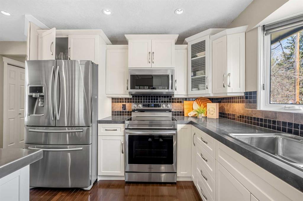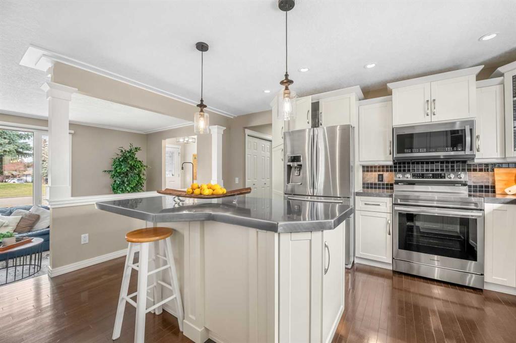 *Open House, Saturday May 2, 1-3pm* Lake Adams Green is an incredible location in Lake Bonavista! Located in a quiet little enclave facing a green space, this is the type of location you’ve been waiting for. Offering almost 2,400 square feet of total space on the main & lower levels, this home features beautiful renovations & sits on a prime lot. With 4 bedrooms & 3 full bathrooms, this home caters nicely to large or growing families. The main area features an open kitchen & dining area that flows nicely into the step-down living room. All three rooms tie together beautifully here. The renovated kitchen is smartly designed with a centre island & loads of cabinet & prep space. Stainless steel appliances include a brand new 2026 oven range. There are 3 main-level bedrooms, with the primary featuring a full, renovated ensuite with a walk-in shower. The main family bathroom is also renovated. The fully developed basement includes a 4th bedroom, full bathroom with a newer shower, rec/entertainment space & a great laundry room. There is also a large storage space, which is very convenient. So many upgrades & updates here, including air conditioning, insulation, roof shingles, eavestroughs, some windows, Rinnai tankless water heater, furnace, new paint, outdoor LED lighting & more. This is a rare front-garage bungalow, which is nice because it affords you a driveway for additional parking & results in a large backyard with full span from side to side. There is a parking pad out here for additional vehicles & access from the back alley. The huge storage shed can store all of your patio furniture, lawn tools & more. The front, brightly lit garage is heated & features a newer acrylic garage floor, easily fitting 2 large vehicles. Lake Adams Green is perfectly located, with ideal access to the lake & Fish Creek Park. The Lake Bonavista Promenade, Southcentre Mall & Avenida Shoppes are located nearby for all of your shopping needs. Walk to the C-Train station in minutes, taking you right downtown. For recreation, you are close to the Trico Centre & Fish Creek Park, with 100 km of walking & bike paths. This property checks all of the boxes: incredible lot, renovated home, quiet street & fantastic community! Call for a private showing. MLS®: A2305531 - Lake Bonavista Bungalow $899,900