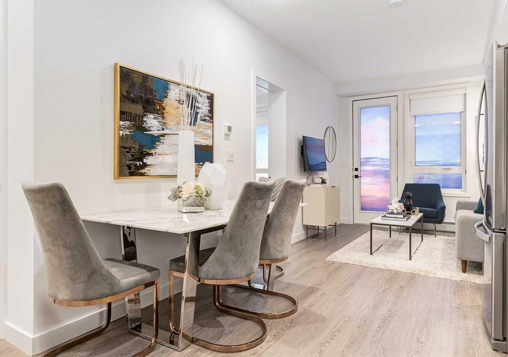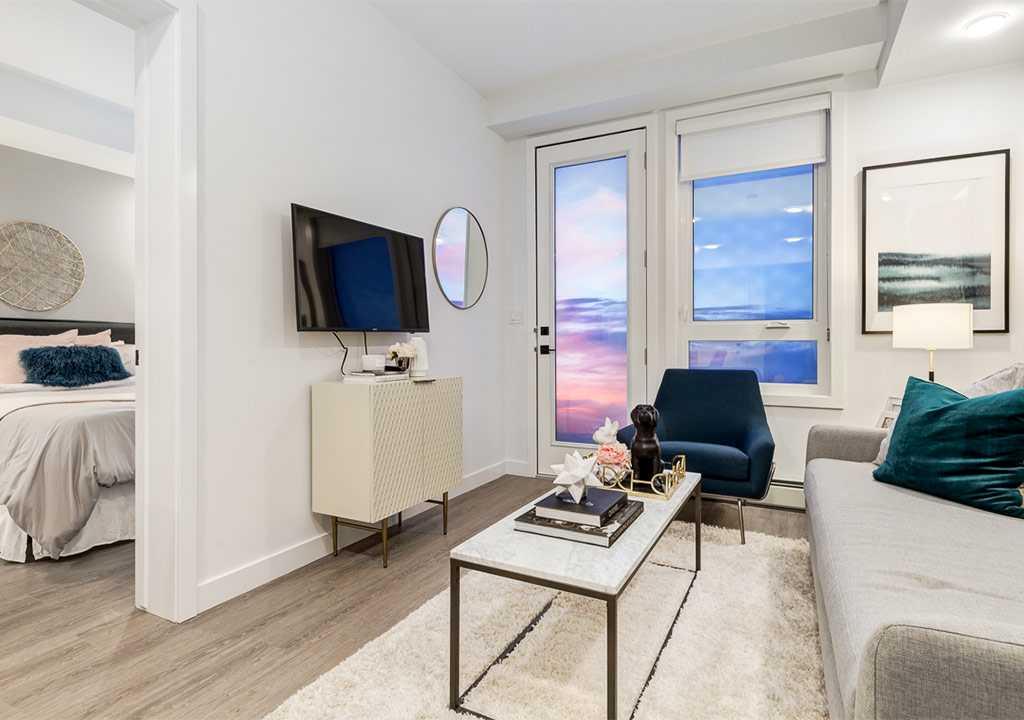 Includes: N/A Property InformationProperty Type: Apartment Home Style: Apartment-Single Level Unit Year Built: 2026 Total Floor Area: 503 sq. ft. Brokerage: CIR Realty Listed Date: Please login or create an account Community InformationCity/Town: Calgary Community: University District ExteriorExterior: Brick, Composite Siding, Concrete, Metal Siding , Mixed, Silent Floor Joists, Wood Frame Construction: Brick,Composite Siding,Concrete,Metal Siding ,Mixed,Silent Floor Joists,Wood Frame Front Exposure: E Roof: Concrete,Flat,Green Roof Parking: Covered, Garage Door Opener, Parkade, Secured, Stall, Titled, Underground Total Parking: 1 InteriorHeating: Boiler, Fan Coil, ENERGY STAR Qualified Equipment, Humidity Control, Natural Gas Basement: None Floor Finish: Vinyl Plank Fireplace Details: For Sale RoomsTotal Bedrooms: 1 (Bedrooms Above: 1) Bathrooms: Full: 1 / Half: 0 Above Grade: 3 Legal, Financial & PossessionZoning: DC Legal Description: Lot/Unit: Lot/Unit:,Plan: 2311079,Block: Monthly Fee: 255 Possession: Upon Completion Occupancy: New; Never Occupied Restrictions: Restrictions,Yes Listing Courtesy of CIR Realty The data included in this display is deemed to be reliable, but is not guaranteed to be accurate by the Calgary Real Estate Board. MLS®: A2274787 - University District Apartment-Single Level Unit $374,900