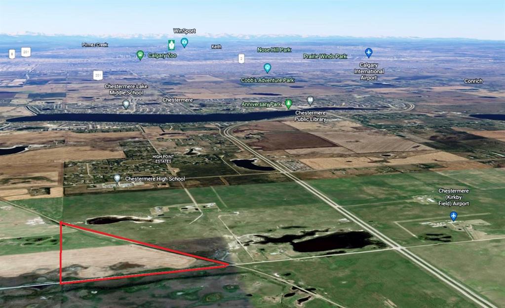 Exceptional PROPERTY FOR FUTURE DEVELOPMENT (subject to approvals) and with a view of the mountains. There is IDEAL ACCESS to this property, being 1 kilometer south of the TransCanada Highway, 2km from Chestermere Airport, and adjacent to a CN railway line. To the west 1 kilometer is Chestermere High School, the City of Chestermere is 3km, and Calgary is 11 km away. UTILITIES ARE CLOSE by as well. This slow-rolling land is cleared and being farmed. There are current and past development plans for the properties to the north and south. The Dehavilland Field airport property is just 11km east. MLS®: A2285639 - Rural Rocky View County $2,442,000